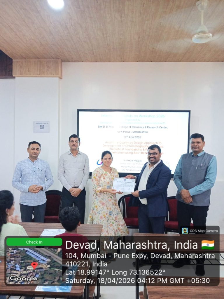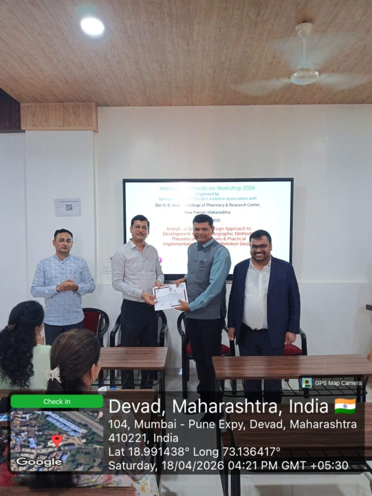The workshop was collaboratively organized by Shri D. D. Vispute College of Pharmacy & Research Centre, Panvel, in association with Springwell Pharma Pvt. Ltd., Ananddeep Foundation, and Indian Pharmaceutical Association (IPA) – Raigad Branch.