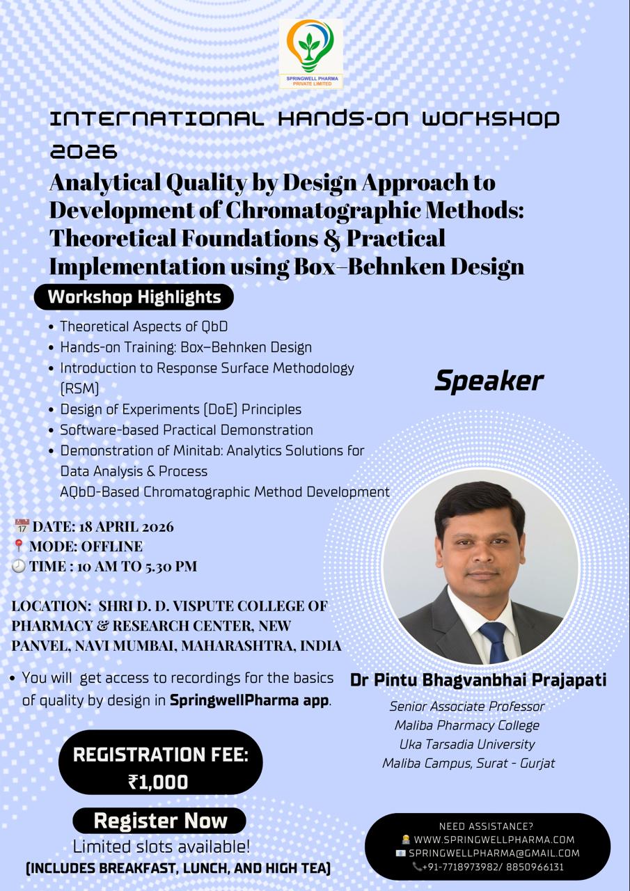 nternational Hands-on Workshop on “Analytical Quality by Design (AQbD) Approach
