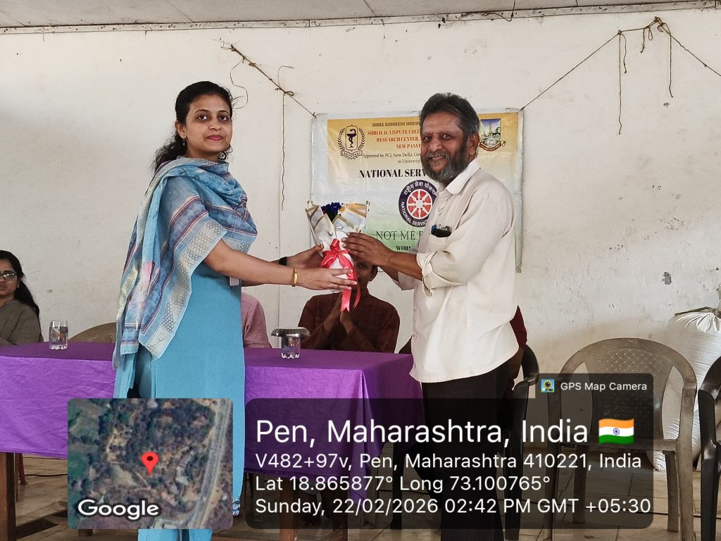 The **Seven Days NSS Residential Camp** was successfully organized by **Shri D. D. Vispute College of Pharmacy and Research Center, Panvel** at **Taragaon, Panvel, District Raigad** from **22nd February to 28th February 2026**. The camp aimed to inculcate social responsibility, leadership qualities, and community service values among NSS volunteers.